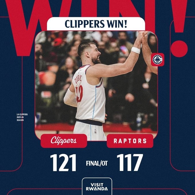 赛后,快船发布赢球海报,封面人物祖巴茨。